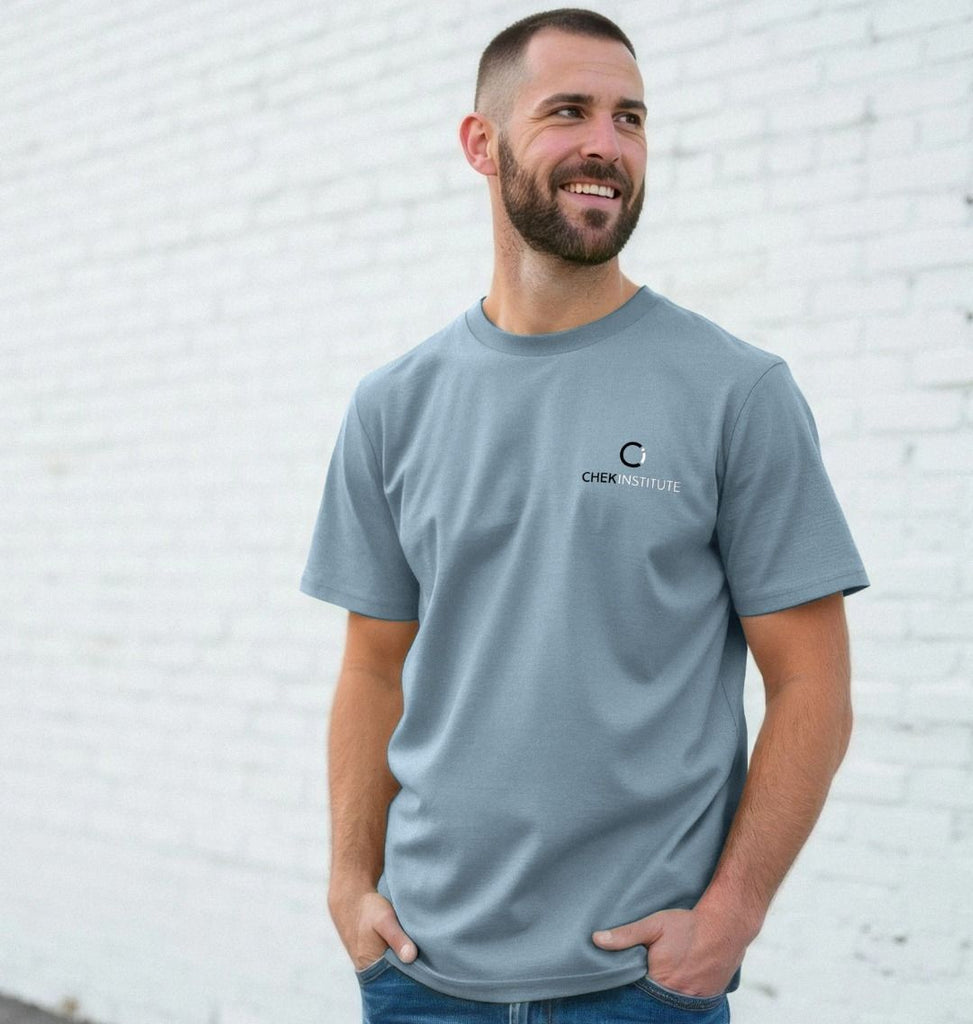 The CHEK Men’s Organic T-Shirt is a simple, dependable staple for the health-conscious male. It is designed with a clean silhouette that works in the gym, in a coaching session or under a casual jacket.