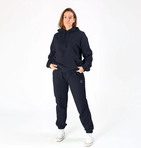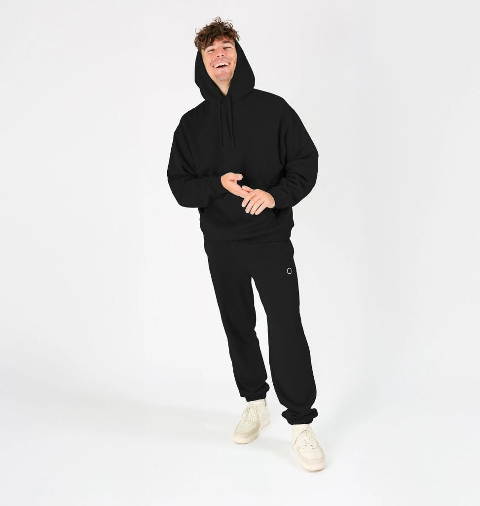 Certified organic cotton fleece unisex joggers with elasticated cuffs and waistline. 300 gsm. Wash cool, hang dry. GM-free. Not tested on animals. Does not contain animal-derived products. Material made in a renewable energy-powered factory, audited for a wide range of social and sustainability criteria. Made to be remade - scan the QR code in the care label to send it back when worn out.