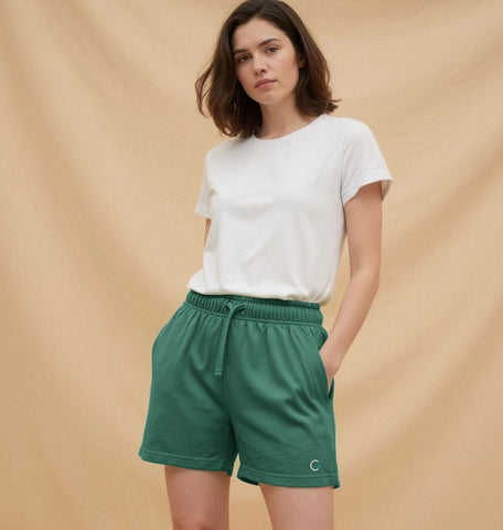Certified organic cotton jogger shorts made with 300 gsm French terry material. Two pockets and regular fit with an elasticated waist. Wash cool, hang dry. GM-free. Not tested on animals. Does not contain animal-derived products. Material made in a renewable energy-powered factory, audited for a wide range of social and sustainability criteria. Made to be remade - scan the QR code in the care label to send it back when worn out.